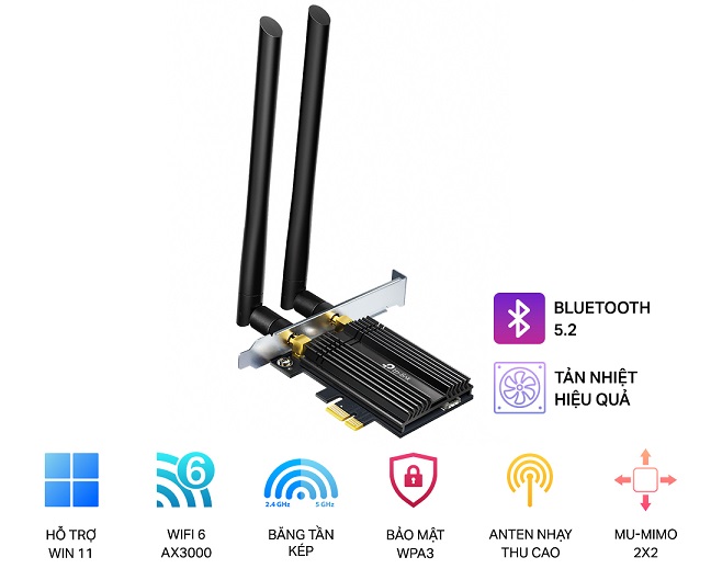 - Mã sản phẩm: AX3000 Wi-Fi 6 Bluetooth 5.0 PCIe Adapter TP-LINK Archer TX50E