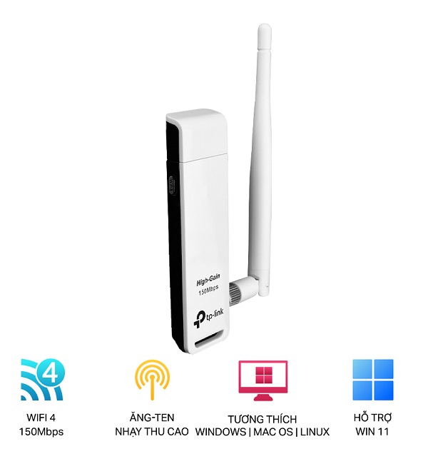 - Mã sản phẩm: 150Mbps High Gain Wireless N USB Adapter TP-LINK TL-WN722N