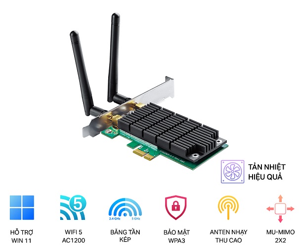 - Mã sản phẩm: AC1200 Wireless Dual Band PCI Express Adapter TP-Link Archer T4E