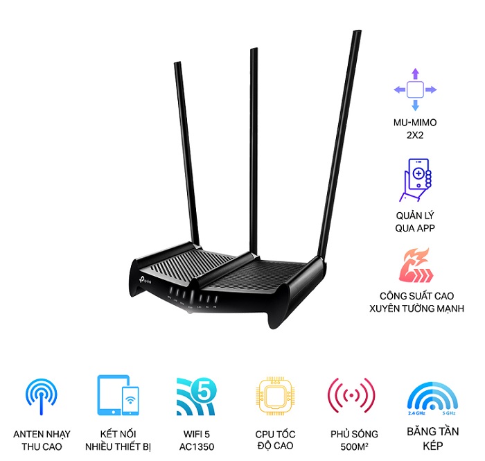 - Các bộ khuếch đại độc lập công suất cao cho phép tăng công suất đầu ra lên đến 1000mW, tăng gấp 5 lần công suất phát so với router thông thường. Đảm bảo tín hiệu không dây đủ mạnh để xuyên qua vách ngăn và các vật cản khác. Loại bỏ điểm chết tín hiệu Wifi.