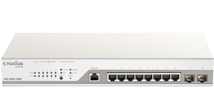 - Mã sản phẩm: 10-port Gigabit Smart Managed PoE Switch D-Link DBS-2000-10MP