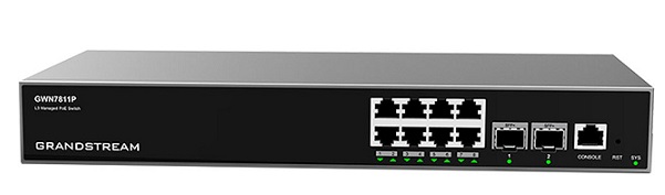 - Mã sản phẩm: 8-Port Gigabit PoE + 2-Port 10Gigabit SFP+ Layer 3 Managed Network Switch Grandstream GWN7811P