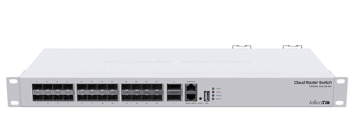 - Switch Mikrotik CRS326-24S+2Q+RM là dòng Cloud Router Switch Layer 3 mạnh mẽ được trang bị các cổng kết nối tốc độ cao, gồm 24 cổng quang 10G và 2 cổng 40G sẵn sàng cho các giải pháp kết nối trong các doanh nghiệp lớn hay trung tâm dữ liệu khổng lồ.