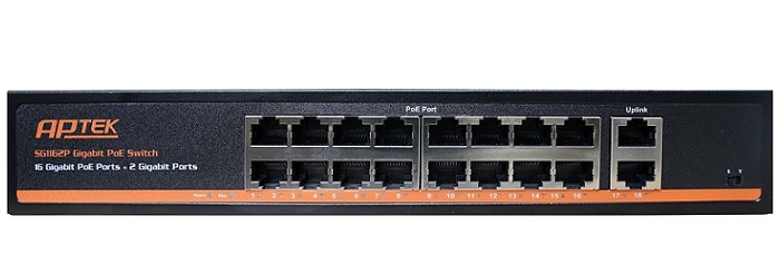 - 16 port PoE Gigabit LAN chuẩn IEEE 802.af/at.
